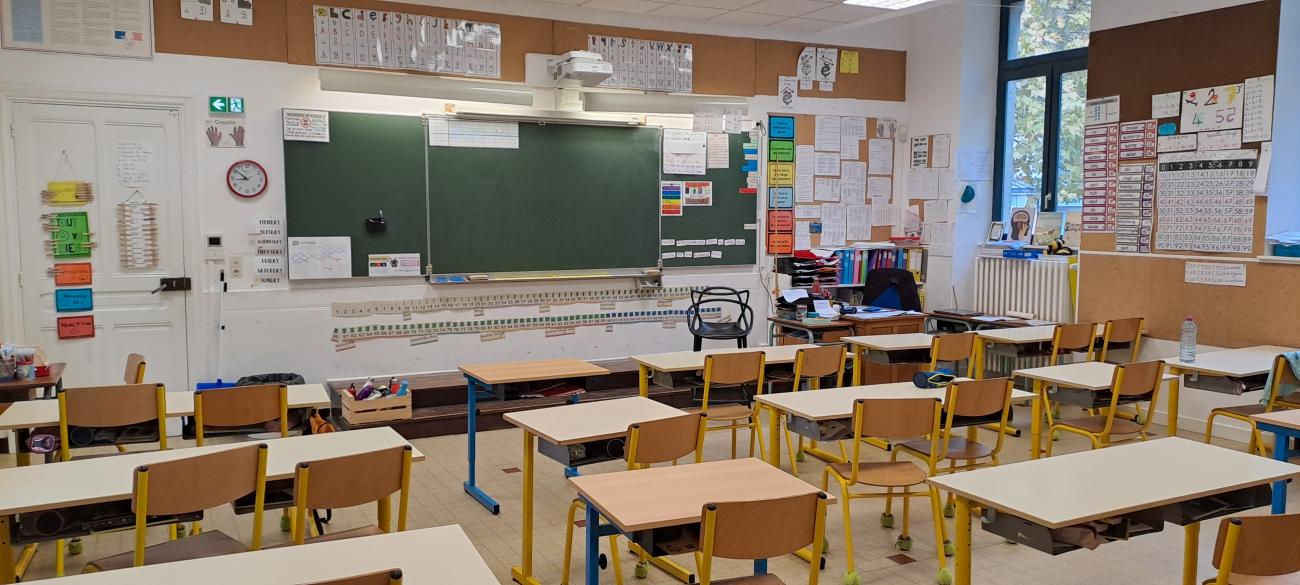 Vue aérienne Plantations au pied des platanes Le coin jardin La BCD Le gymnase Dumont Une des classes de l'école